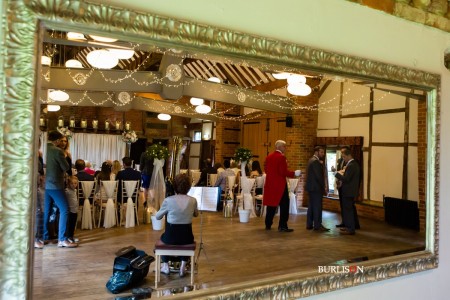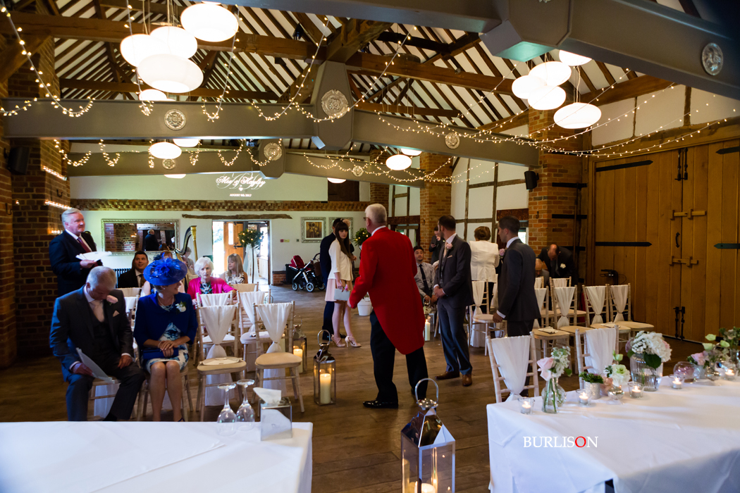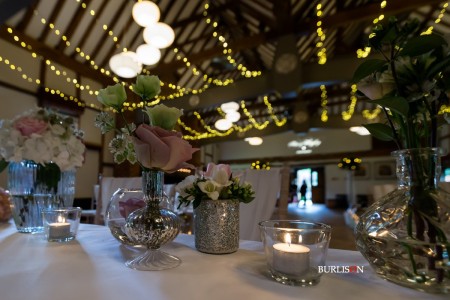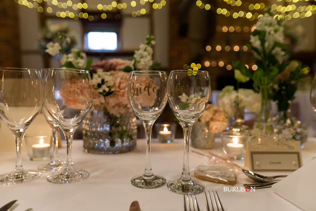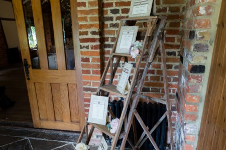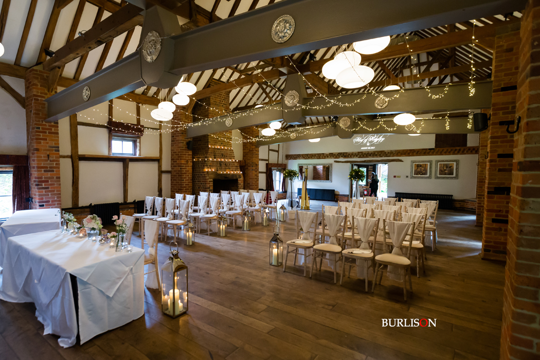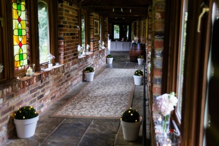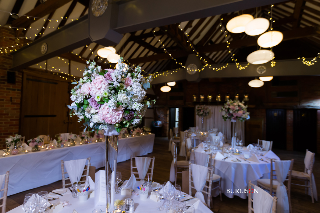 The Dawley Barn looked amazing with Flowers by Exclusively Weddings. Chair covers, draped backdrop and stationary by Laurel Designs.