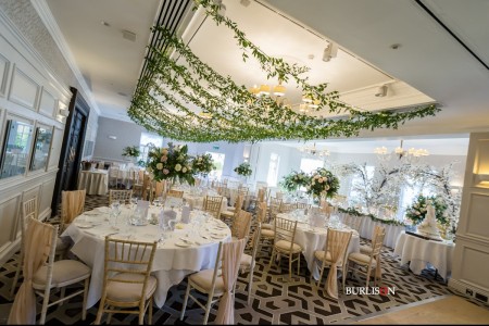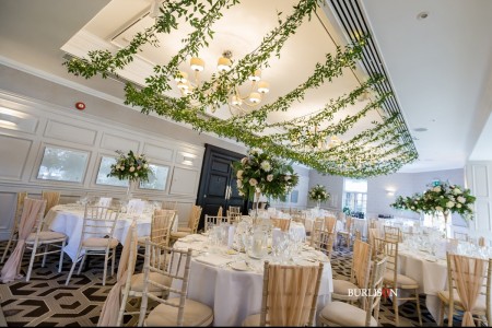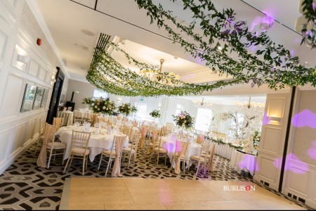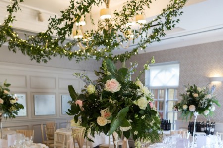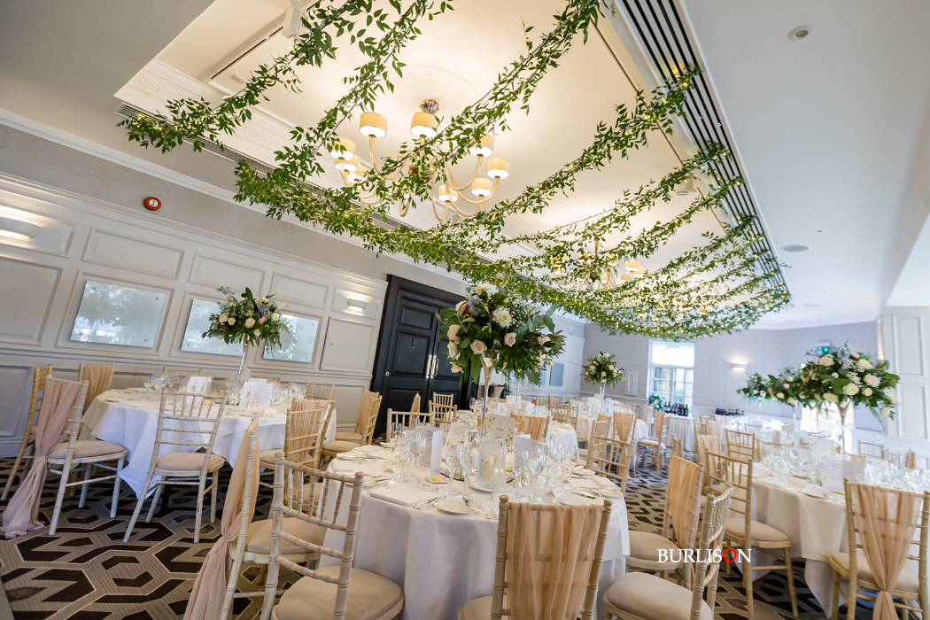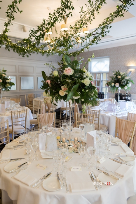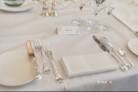 A gorgeous summer wedding for Millie & Andy at Pennyhill Park, Surrey. Take a look at the fabulous overhead floral decoration for the reception. Also the magnificent Silver Cutlery from the family business (British Silverware).
